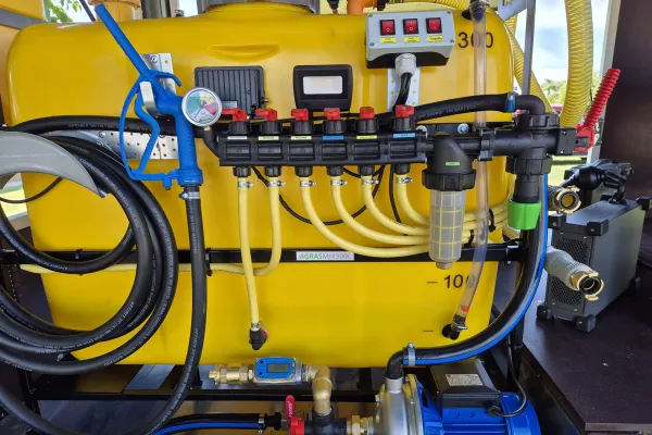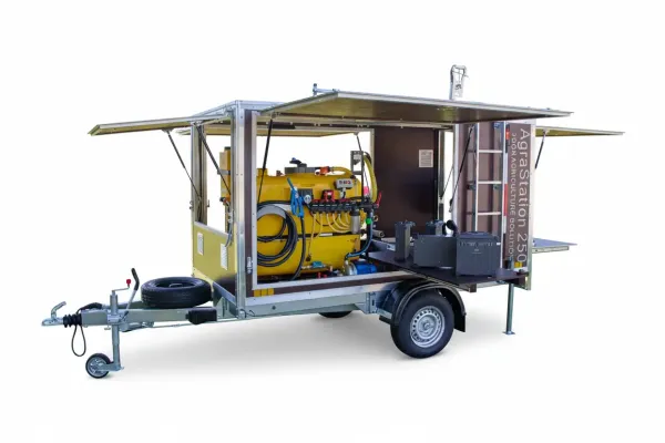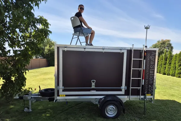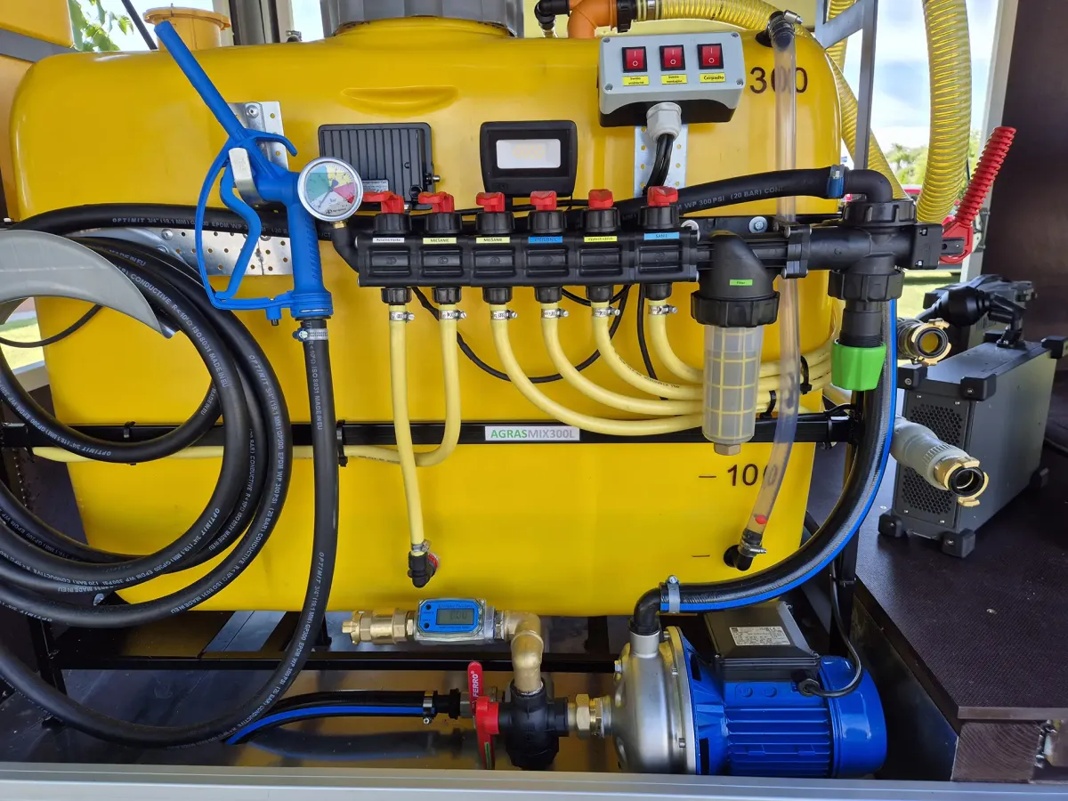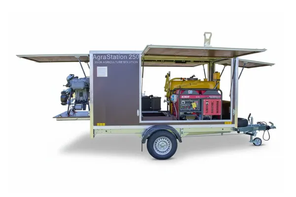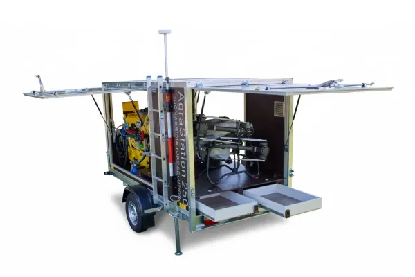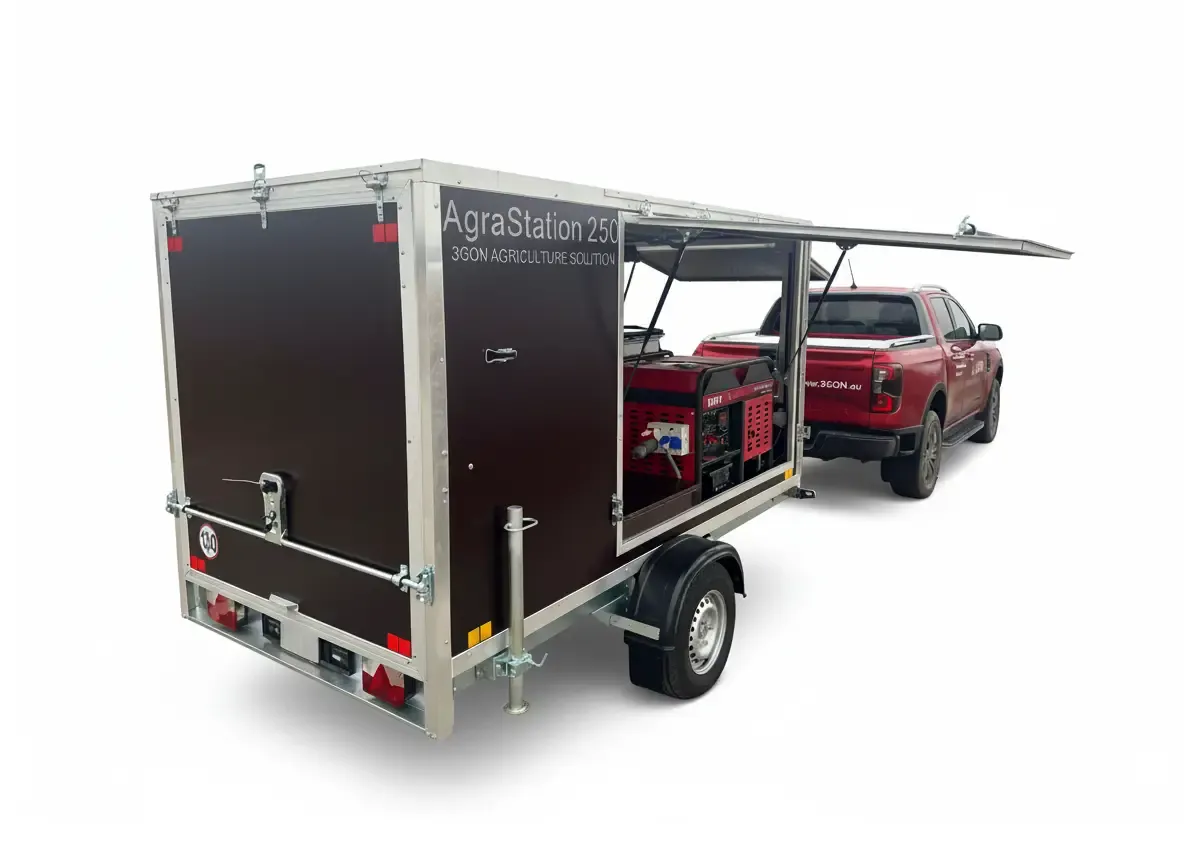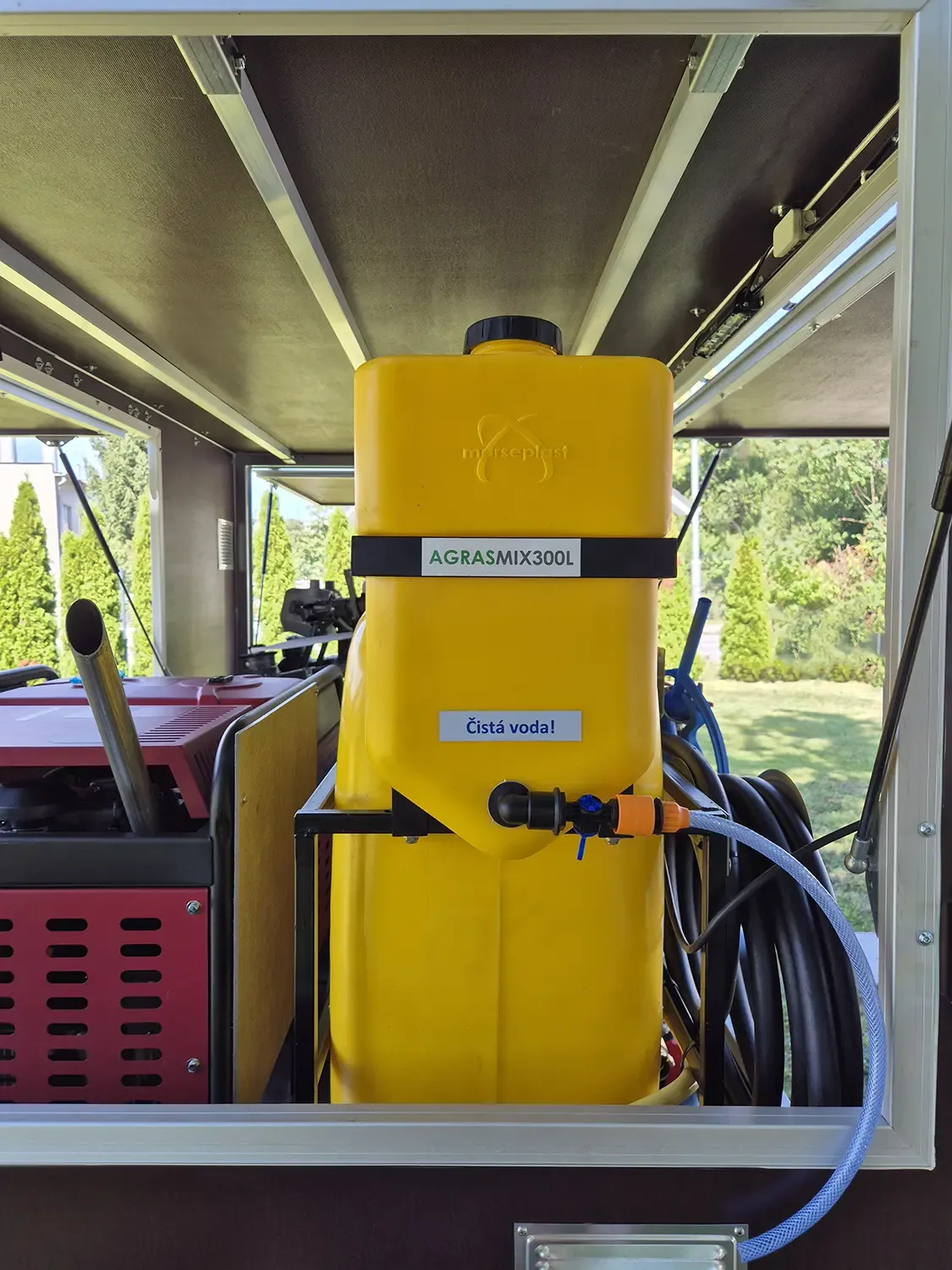 Vozík má výsuvný systém pre drony DJI (T30 až T50), výkonný generátor, 300-litrový mixér s certifikovaným vyplachovaním a LED osvetlenie. Robustná konštrukcia a prispôsobenie na mieru zaručujú spoľahlivé využitie v teréne.