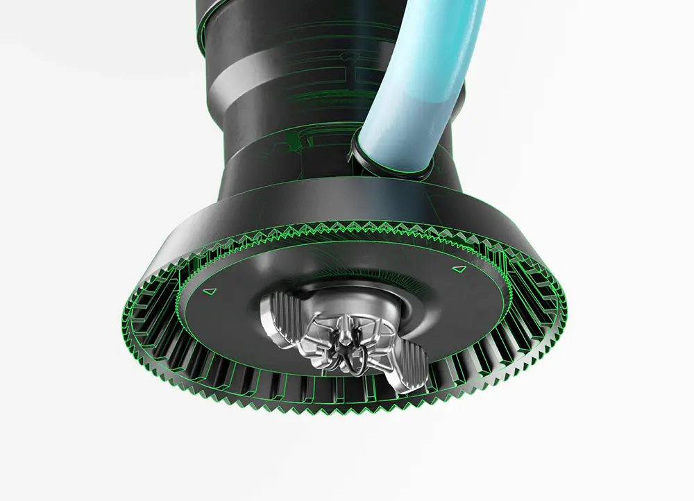 Konštrukcia s dvojitým atomizačným postrekovacím diskom predlžuje životnosť o 66% a zabezpečuje rovnomernejšiu veľkosť kvapiek, čo vedie k lepšiemu postrekovému účinku.