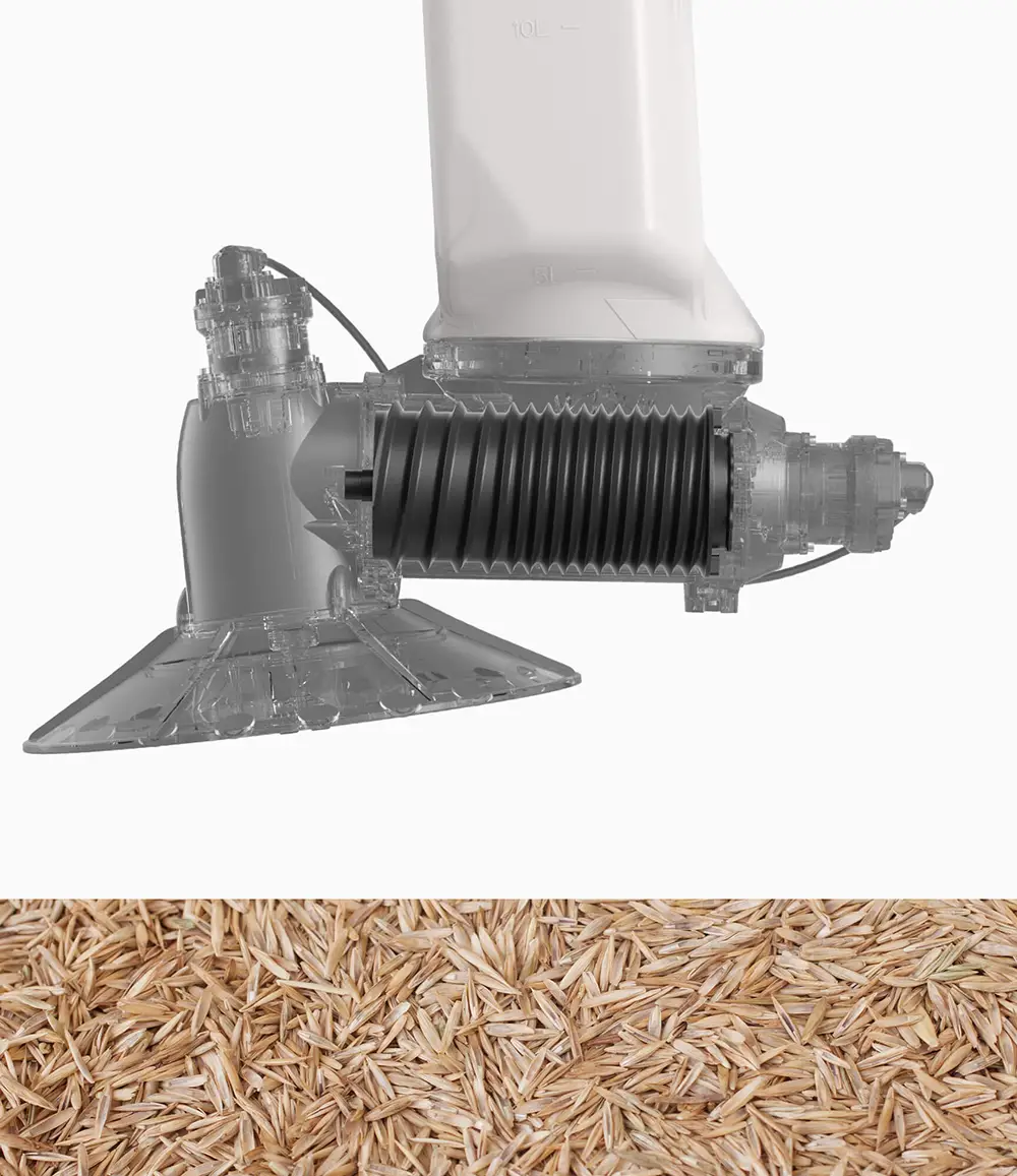 Vhodný na granule, ako sú repkové osivo, granulované herbicídy, osivá tráv, granulované insekticídy a pod.