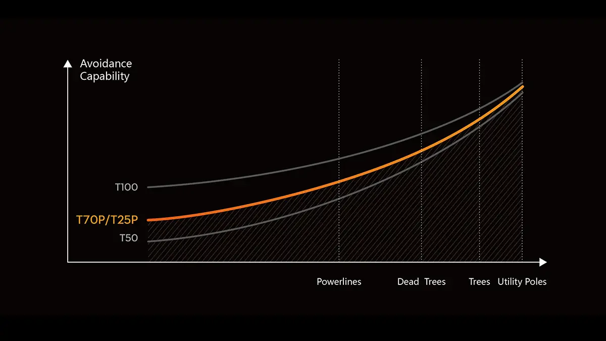 Vysoká úroveň vnímania pre komplexnú bezpečnosť.Vylepšený bezpečnostný systém T25P Safety System 3.0 obsahuje milimetrový radar, 10-násobne vyšší výpočtový výkon avioniky a trojkamerový senzorový systém s dosahom 60m pre ešte lepšie kopírovanie terénu a vyhýbanie sa prekážkam.