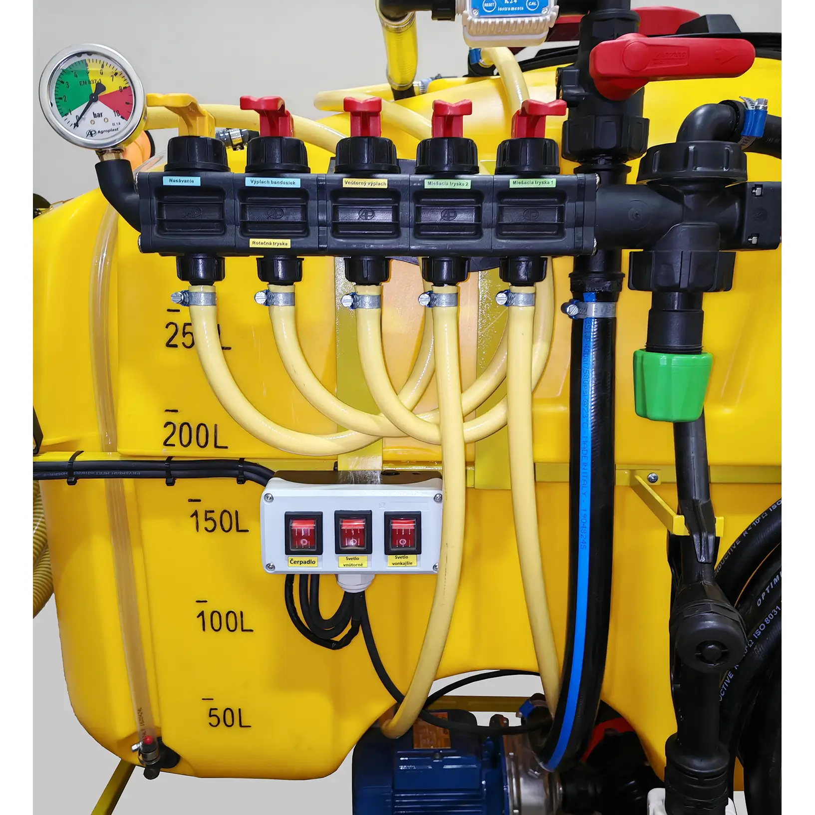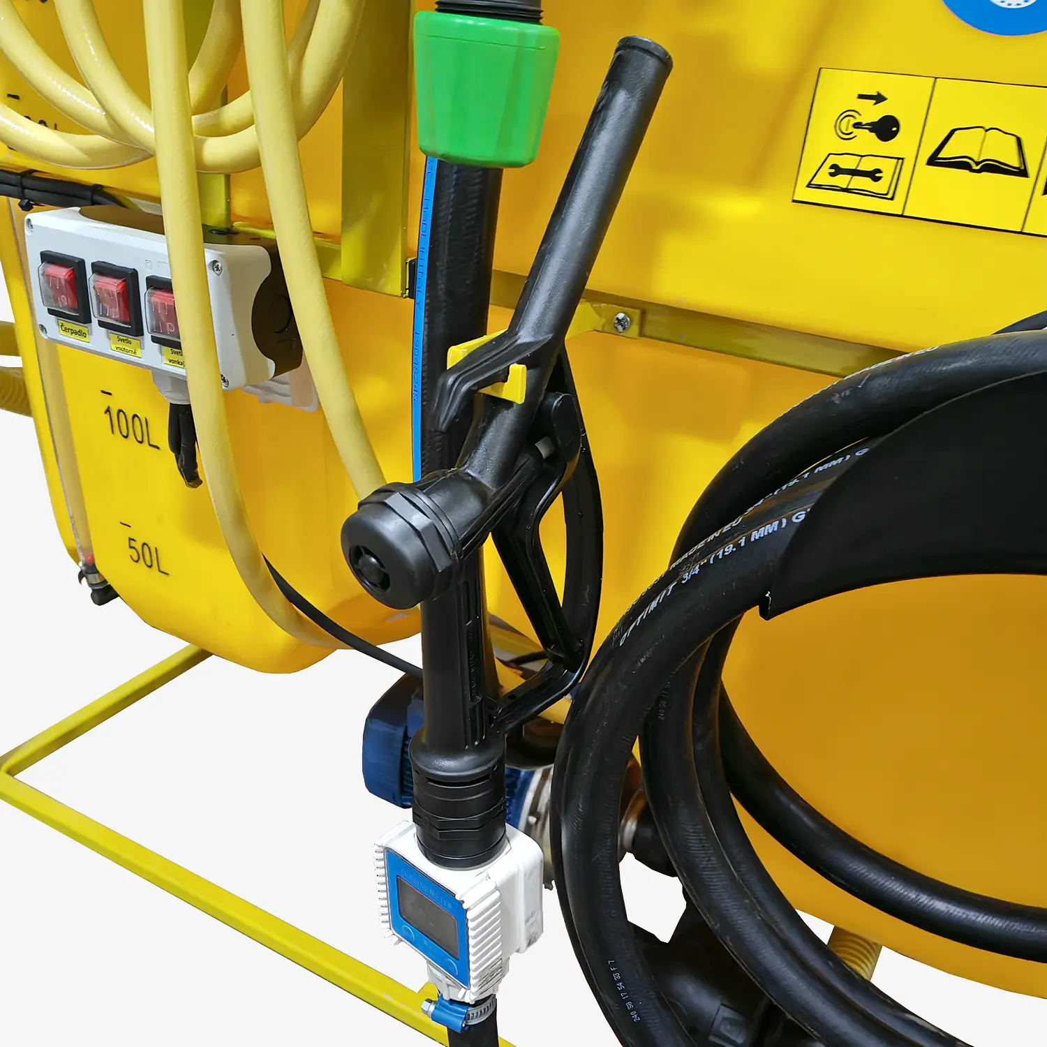 - Tankovacia pištoľ podľa výberu: plastová (odolná voči chémii) alebo kovová s digitálnym ukazovateľom načerpanej tekutiny