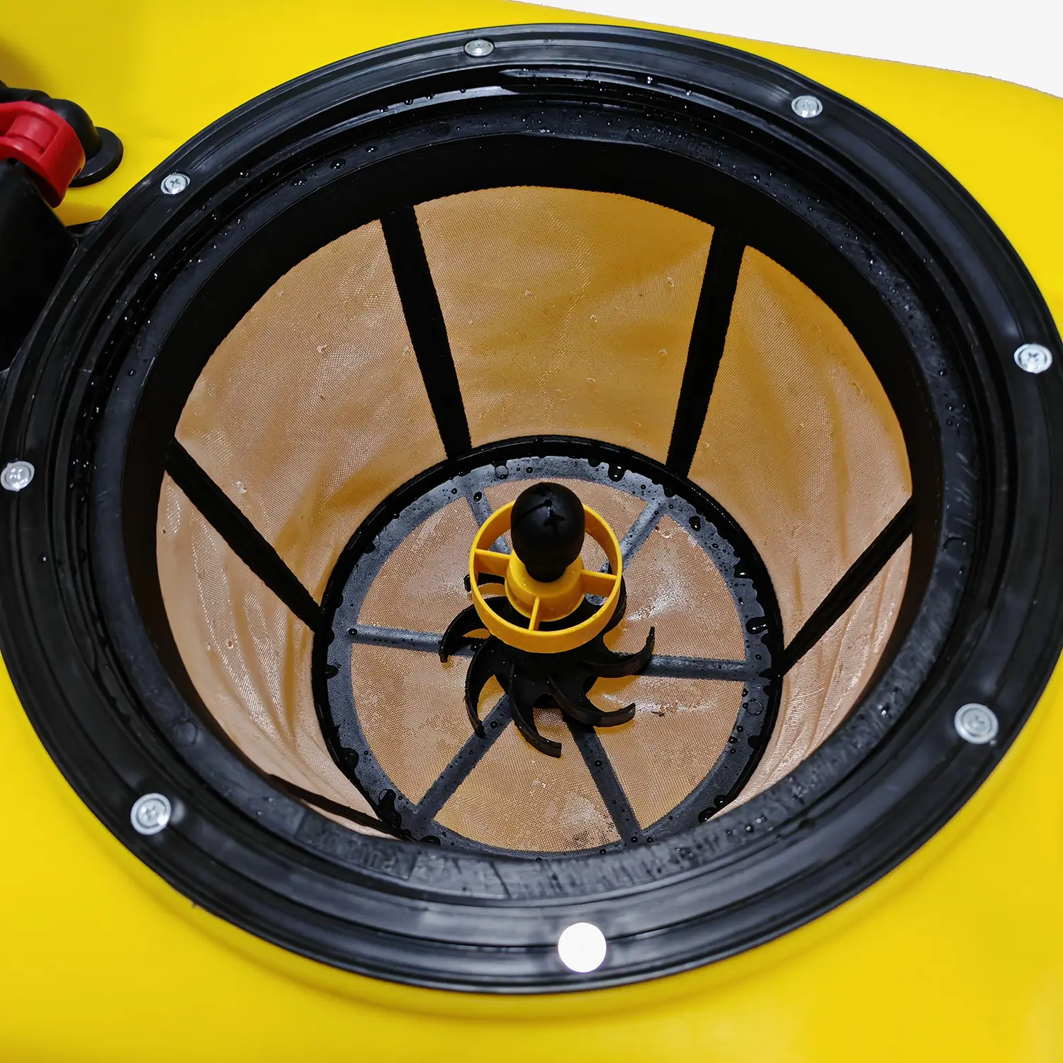 - Nasávací systém na báze Venturiho efektu so spätnou klapkou na bezpečné nasávanie aplikačných látok alebo vody